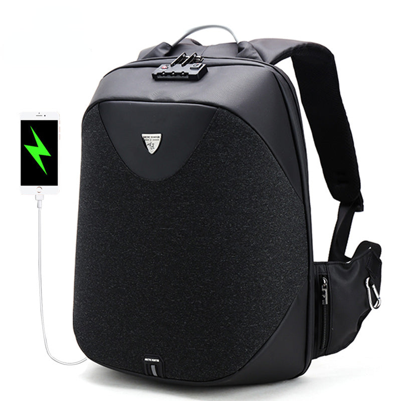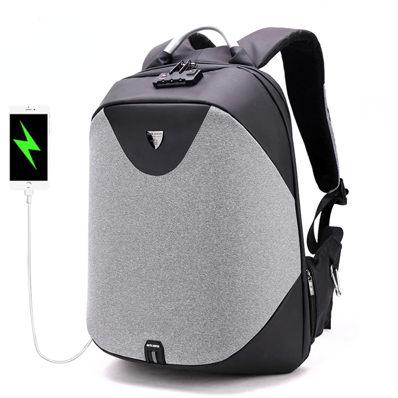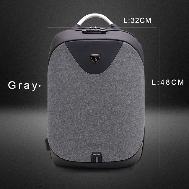 Stylish Anti Theft Travel Backpack with Cable Storage Board USB Charging Port for Men with Water Bottle Holder