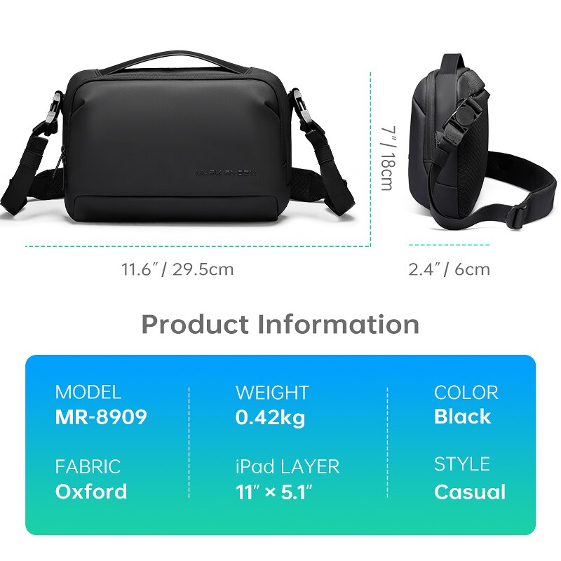Crossbody Bag for Men Water Repellent Shoulder Bag Short Trip for 9.7 inch iPad
