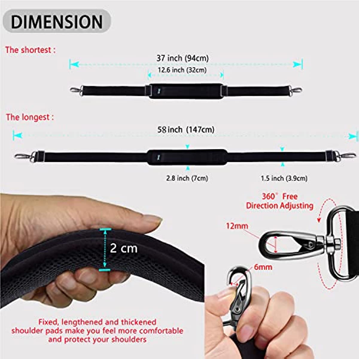 Dual Balanced Buckles: They can adjust both ends and make the fixed pad keep in the middle of the strap, let shoulder force more even, make bag Feel 50% Lighter; the DUAL CLASPS ARE STABLE and will not change the length of the shoulder strap on its own due to the weight change of the bag. Ideal gifts for Anniversary Birthday. Sturdy Hooks: High quality aluminum alloy material is more solid and hard, enough for the weight of 50kg; the hooks opening is larger than other regular straps, 360 rotation, easier to hang on D-ring or equivalent hardware. Especially for Laptop Bag, Briefcase, Messenger Bag, Duffel Bag, Diaper Bag, Tool Bag, Sport Bag, Crossbody Bag, Travel bag, Luggage Bag, Tote Bag, Gym Bag, Garment Bag, Guitar, Camera Bag etc.