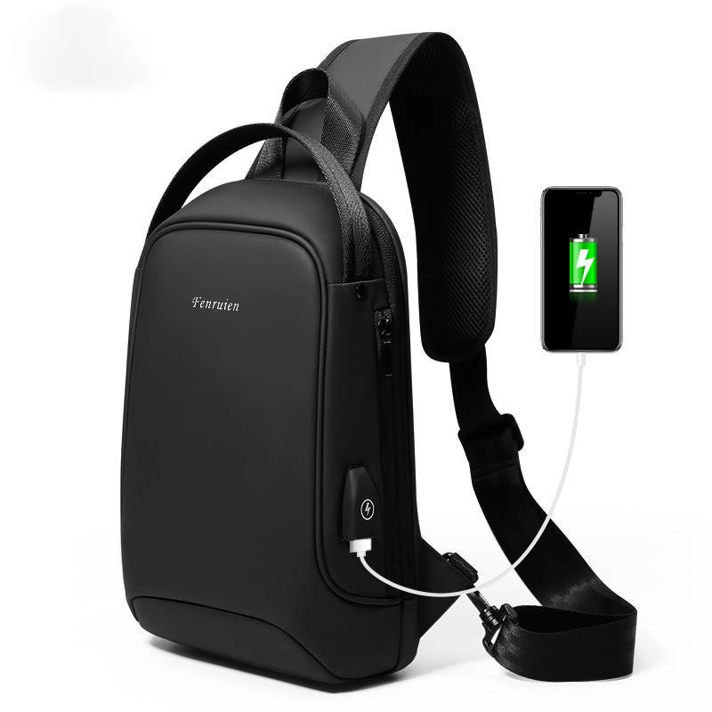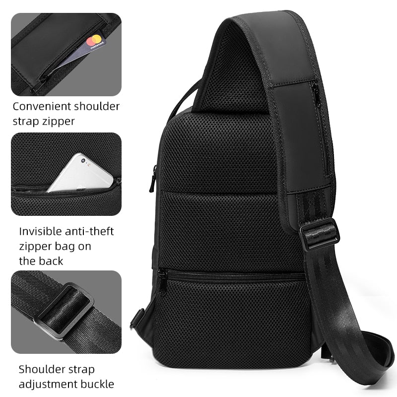 Sling Crossbody Bag Shoulder Bag for 9.7" iPad USB Charging Chest Bag Short Trip Water Repellent Crossbody Bag Black
