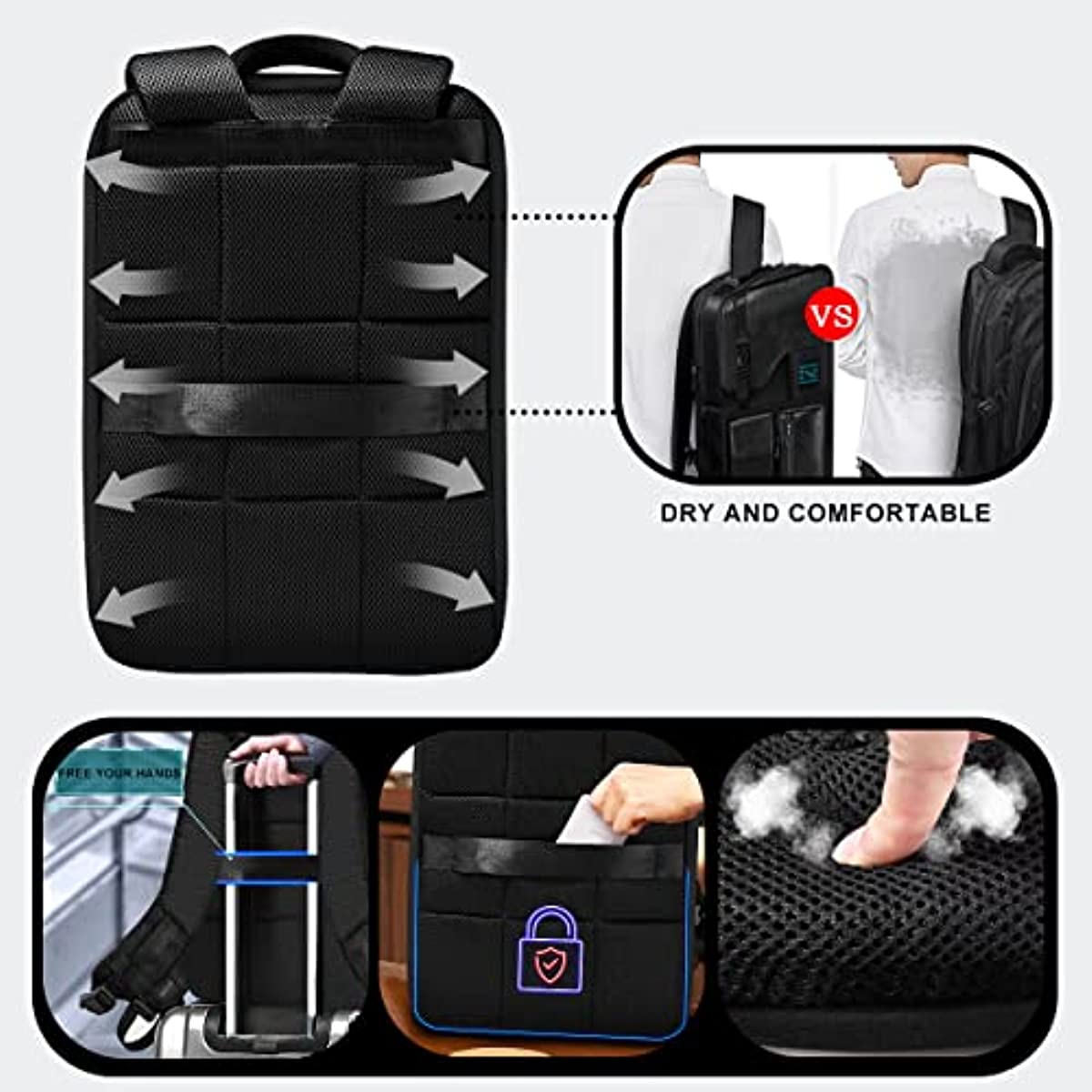 Practical & Elegant: TSA approved designed and size for airplane travel, 90-180 degrees wide open making you quickly through the airport security. External USB port with set-in charging cable offers for your cellphone and other electronic devices. More pockets make your items well-organized. The variable capacity laptop backpack always keeps your elegance well as a professional and capable person compared to other backpacks.
