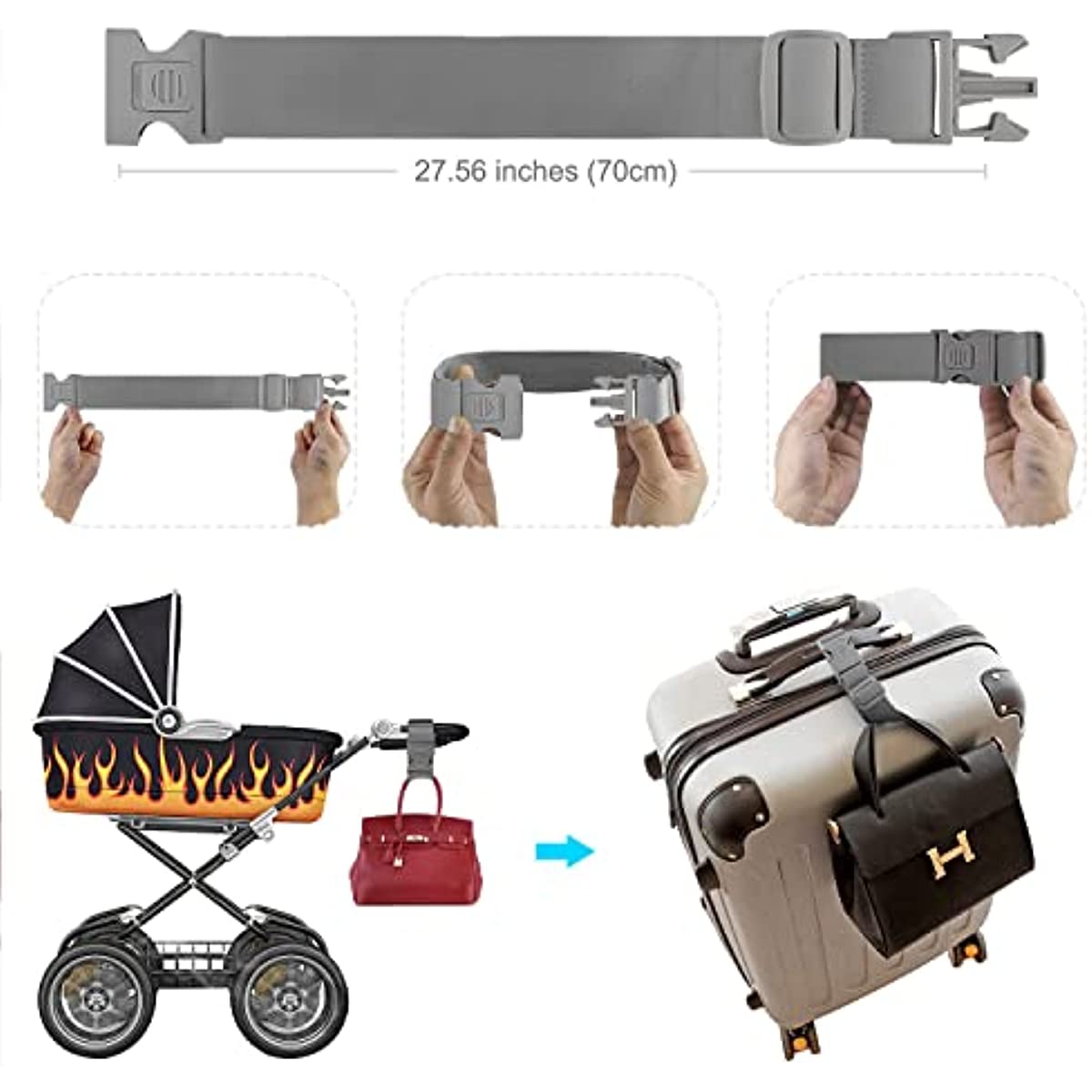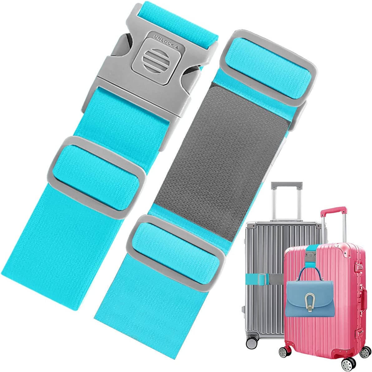 Safety Design - New upgraded anti-pinch buckle for avoiding to hurt your hand when use it. Secure buckle closure with locking function that never take off by itself, safety and easy to use. Whether you are traveling or moving, this is A must-have for packing. You can even use it as a belt. Find out more ways to use it.