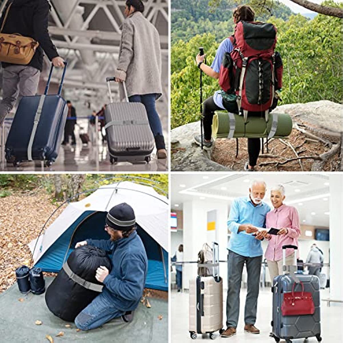 Versatility Collocation - The long suitable for large luggage fastening, The short one suitable for fastening small bag to a suitcase, flexible combination to use them for travel. The suitcase straps can be adjustable and stretchable for any size luggage and baggage, suitcases bags, backpacks, car luggage and so on.